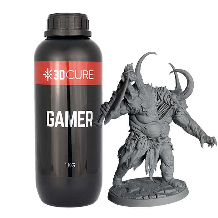 A Resina 3D Cure Gamer é ideal para impressão de miniaturas e peças de jogos de tabuleiro. São resinas resistentes, possuem baixo odor, alta pigmentação, são mais reativas e possuem um excelente detalhamento superficial.