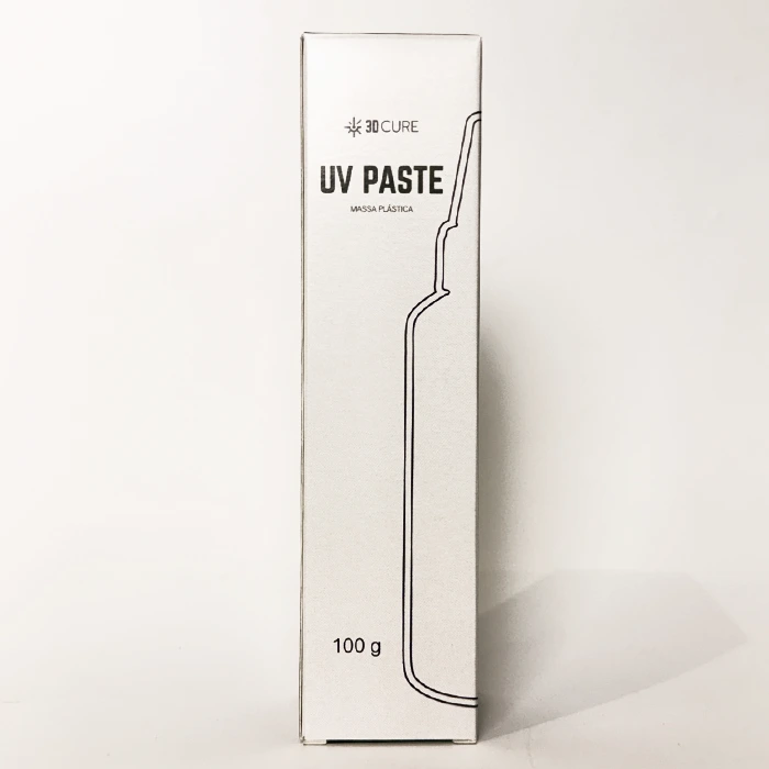 A massa plástica fotopolimerizável UV Paste da 3D Cure é um material de reparo versátil criado para quem trabalha com impressão 3D. Vendida em bisnagas de 100 g, ela garante aplicação simples, alta precisão e cura instantânea ao entrar em contato com a luz ultravioleta.